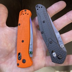 Казалось бы, как можно улучшить и без того сверхпопулярный Benchmade Bugout? Модель, которая уже много лет является воплощением совершенства в сфере EDC. Но оказывается можно освежить культовую модель и сделать ряд нововведений. Прежде всего, изменилась сталь на клинке — в этой модификации это CPM-20CV. Также изменился материал рукояти, вместо полимера теперь стоит G10, кстати с другой текстурой. В качестве финального штриха изменился цвет шпенька, в этой версии он стал ярким и выделяющимся.
